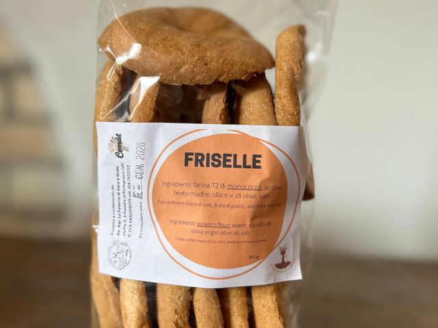 Ingredienti: farina T2 di monococco, olio evo, lievito madre di grano tenero, sale.
