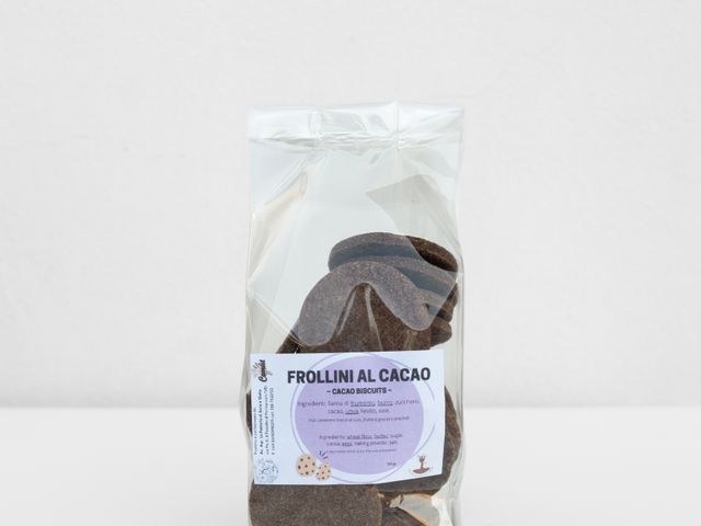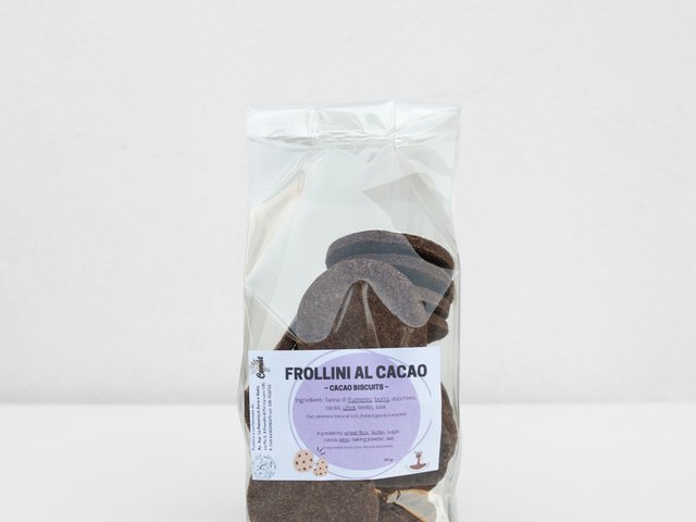 Ingredienti: farina T2 di grano tenero vecchie varietà, burro, zucchero, uova, cacao amaro in polvere.