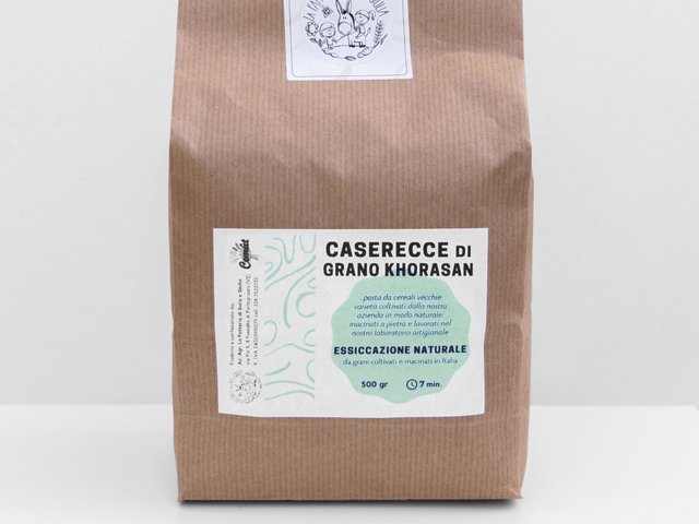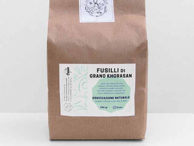 Confezione da 500 gr di pasta corta prodotta con farina 100% T2 khorasan.