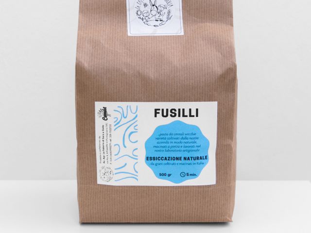 Confezione da 500 gr di pasta corta prodotta con farina 55% grano tenero T2 miscuglio di varietà - 45% farina di grano duro.