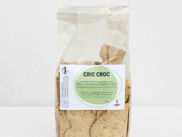 Ingredienti: farina T2 di monococco, olio evo, salvia e santoreggia, sale.